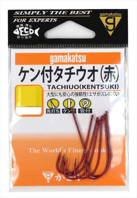 エサ持ちが非常に良いケン付のワームフック型タチウオ鈎です。大型のタチウオが掛かってもビクともしない太さでありながら、鈎先が鋭く、また鈍くなりにくいのもこの鈎の特長です。※掲載している商品の画像は代表画像を表示しています。また実物と色が違って見える場合があります。あらかじめご了承下さい。