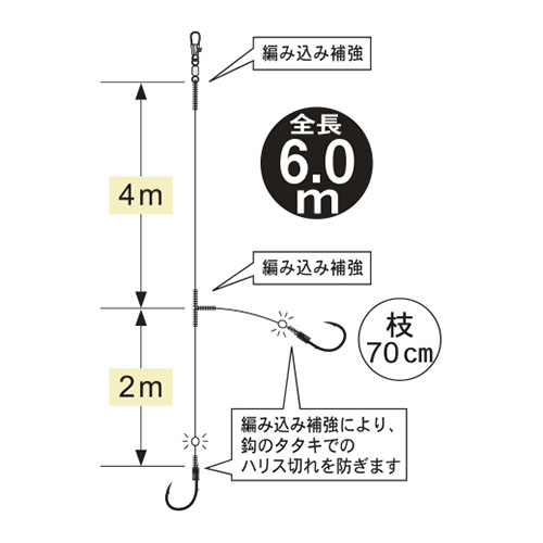 全長6m 号数:8 ハリス:3 幹糸:3 使用鈎/ケン付真鯛 ナノスムースコート 2本(1組入) ※掲載している商品の画像は代表画像を表示しています。また実物と色が違って見える場合があります。あらかじめご了承下さい。