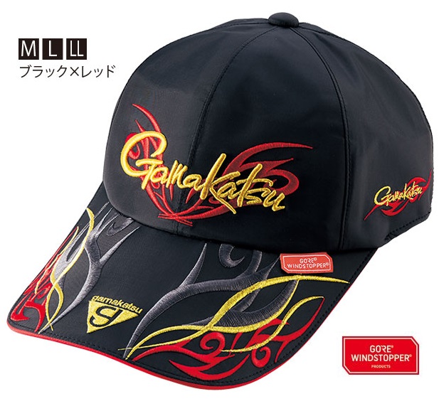 がまかつ GM9842 ウィンドストッパーロングバイザーキャップ ブラック/レッド LL