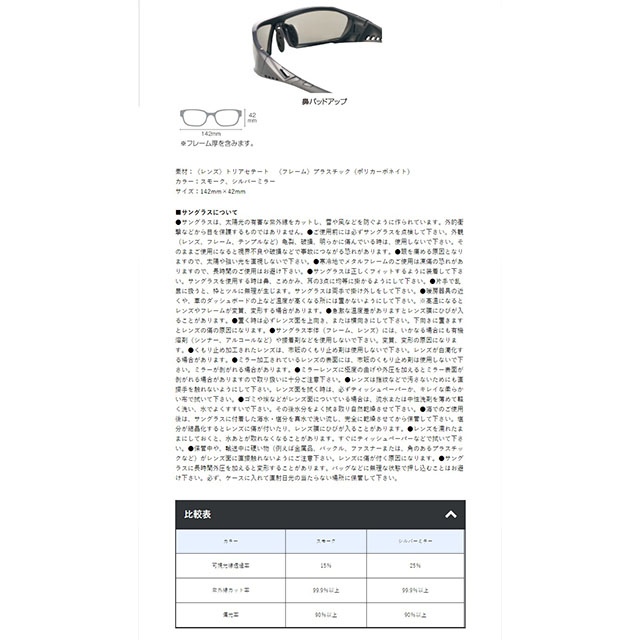 素材:[レンズ]トリアセテート [フレーム]プラスチック(ポリカーボネイト) サイズ:142mm×42mm ※掲載している商品の画像は代表画像を表示しています。また実物と色が違って見える場合があります。あらかじめご了承下さい。