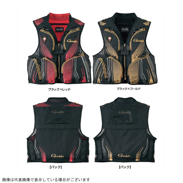 がまかつ GM2318 ハーフメッシュベスト ブラック/ゴールド 5L
