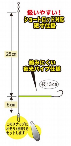 手軽にアナゴ釣りが楽しめます!全長が短いのでショートロッドにも対応し、エダスは夜光パイプ仕様なので、仕掛がカラミにくくアピール力も抜群です。