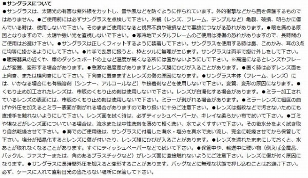 素材:〈レンズ〉トリアセテート 〈フレーム〉プラスチック(ナイロン樹脂) レンズカラー:アクアブルーミラー 可視光線透過率:15% 紫外線カット率:99.9%以上 偏光率:90%以上