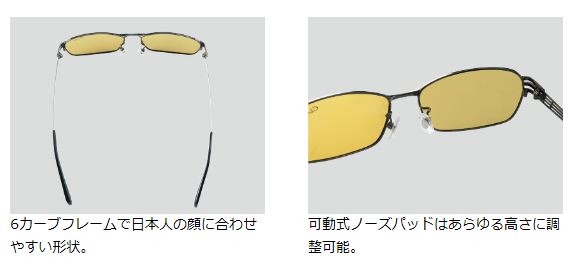 ●本体素材には錆に強いステンレスを採用。●鼻パッドが可動式で細かな調整が可能です。●シャープな印象を与える細身のレンズを採用。〈ライトスモーク〉明るめオールマイティレンズ。晴天時の厳しい光を抑制することで、目に与えるダメージを抑え長時間の釣行でも負担を低減します。真夏の強い日差しを遮るだけでなく、真冬の朝マヅメ・夕マヅメで太陽の角度が低くギラつきの強い時間帯にも、水面の些細な動きを捉えることを可能にします。〈アンバーオレンジ〉コントラストをはっきりさせる効果のあるアンバーオレンジは対象物をより立体的にみせます。暗所や天候の悪い時でも暗くなりにくく、くっきりと視界を確保し続けます。