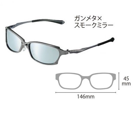 素材:ガンメタ〈レンズ〉トリアセテート 〈フレーム〉アルミニウム、チタン レンズカラー:ガンメタ×スモークミラー 可視光線透過率:15% 紫外線カット率:99.9%以上 偏光率:90%以上
