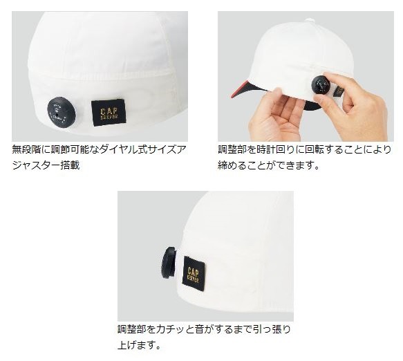 ●ダイヤル調整機能のついたレインキャップです。●無段階に調節可能なダイヤル式サイズアジャスター搭載。細かなサイズ調整ができ、ワンタッチで簡単に緩めることができます。●従来帽子の背面にあるカマボコ型の抜きをなくし、ラウンド形状に仕上げることで、頭に限りなくフィットする形状に仕上げることができました。●独自開発のオリジナル形状により強く締めあげてもつっぱり感が少なく、頭全体をホールドしてくれます。●日差しの遮蔽性能に優れたワイド庇を採用。●庇長さ9cm ※締めながらサイズを調整する仕様です。ご試着の上、サイズをお確かめください。※ダイヤル調整部は仕様上、水分が浸入する可能性があります。その際はダイヤル調整部付近に配置している穴から水を抜いてください。