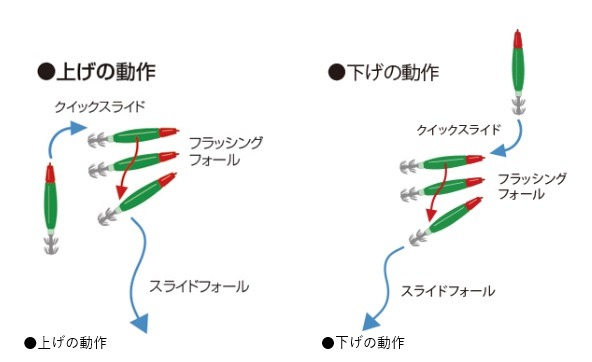 スライドフォール、イレギュラーアクションで広範囲にアピール可能なサーチ型モデル!!ボディ側面にエッジを効かせた形状がスライドフォール、イレギュラーアクションを発生させ広範囲のイカにアピール。スライド型形状でありながら絶妙な重量バランスにより素早いフォールも実現しております。一日を通して快適に使用できる引き抵抗の軽さと素直な操作性もこの商品の特長です。シーズンを通して使えるサーチ型オールラウンドモデルとしてタックルボックスに忍ばせください。