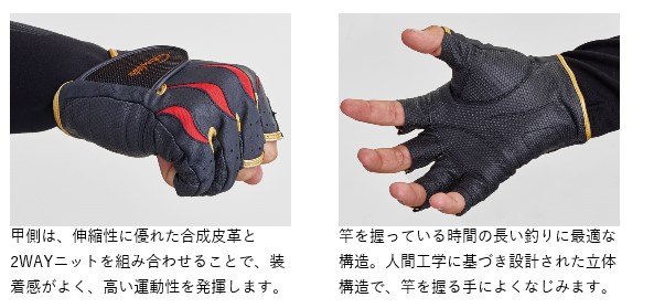 ●最も力を抜いた時の指が曲がった状態で立体カーブを作ったまさに“握ること”を目的に開発したグローブです。甲側は、伸縮性に優れた合成皮革と2WAY ニットを組み合わせることで装着感がよく、高い運動性を発揮します。