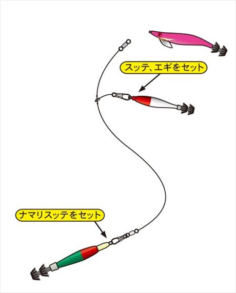 熱く盛り上がるイカメタルゲームに!ルアー感覚でダイレクトなやり取りを堪能できるイカメタルゲーム専用のリーダーです。先端のスナップに鉛スッテを付け、枝には浮スッテ、もしくは小型のエギを取り付けてご使用ください。※掲載している商品の画像は代表画像を表示しています。また実物と色が違って見える場合があります。あらかじめご了承下さい。