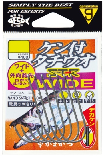 「ワイド」+「外向き鈎先」による抜群の鈎掛かり!コンタクト性を高めた攻撃的な鈎先が、低活性時の喰い渋りや「止め」の際に出る小さなアタリも瞬時にフックアップ。エサのズレを防ぐ「デカケン」仕様。抜群の貫通性能を発揮する「ナノスムースコート」