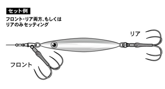 上級者の中でシークレットになった「両掛鈎」をタチウオジギング専用にカスタマイズ!!タチウオがフォール中にバイトすると、ジグが着底したような感覚になりますので、すかさずフッキングしてください。●タチウオがフォール中にバイトすると、ジグが着底したような感覚になりますので、すかさずフッキングしてください。