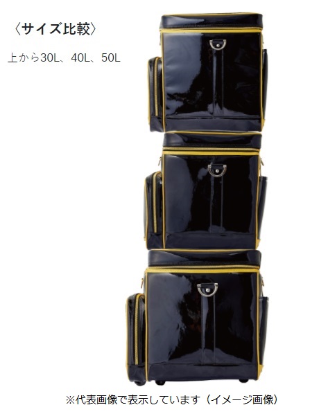 ・本体表生地には、雨などの水汚れに強く、エサなどの汚れが付着してもふき取りやすいP.V.C素材を採用。内側生地には、耐摩擦に優れたナイロン生地を使用しています。・本体サイズは、コンパクトにまとまられる30リットル/40リットルと、収納力抜群の50リットルの3タイプをラインナップ。・小物の収納に便利なフィッシングポーチを付属。・底面には足高の鋲を配置し、桟橋からの汚れや湿気から本体を守ります。・濡れた手でもつまみやすいラバー引き手を採用しています。・ネームホルダーを付属。