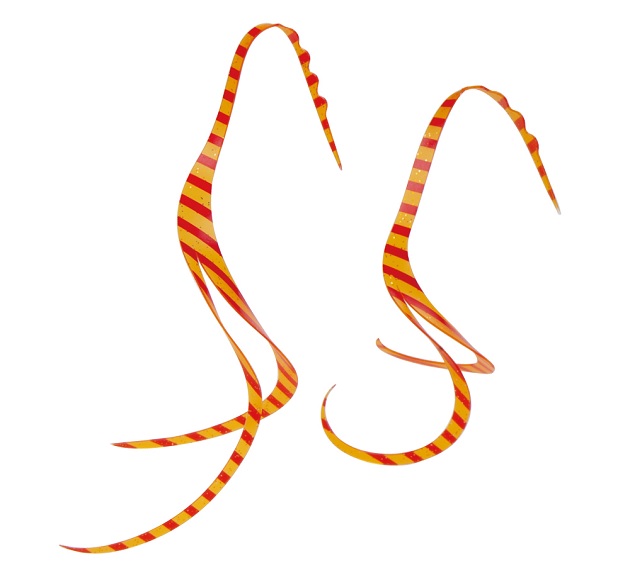 緩やかなビッグカーリーを太細で2分割し、デッドスローでは、緩やかでなめらかな動き、高速引きではピッチの異なる波動を生み出します。ラージパターンとスモールパターンの2種類、それぞれ2セット入りです。