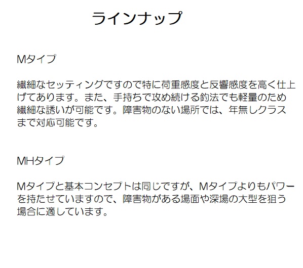 タイプ:MH 標準全長:1.6m 標準自重:55g 仕舞寸法:119.0cm 使用材料:C82.0%、G18.0% モーメント:2.0 継数:2本 先径(極先調子):0.35mm 先径(中調子):0.45mm 錘負荷:0-3号 適正ハリス:1-3号 付属品:極先調子穂先、中調子穂先、セミハードロッドケース