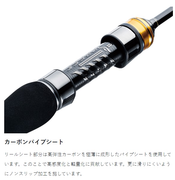 がまちぬ いかだ史上、最も細身かつ軽量設計を施しました。従来のブランクの役割を見つめなおし、徹底的に贅肉を排除し筋肉質に鍛え上げました。従来のいかだ竿では粘りを重視してグラス繊維が多く使われていましたが、今回、超細身で軽量なブランクにするためカーボン繊維をメインマテリアルにし、かつ竿のタタキを抑えるために、磯竿に採用されている技術「INASystem(イナシステム)」を採用しました。そのことで、やり取りの際に竿が叩くことがなくスムーズに魚を浮かせることができます。 また、リザウンドグリップを採用することで軽量化と感度の大幅な向上を実現しました。従来では感じにくかった「荷重感度」が大幅に向上しており、潮や餌の重みがよくわかります。また「反響感度」も十分に備えております。穂先には新たに極先調子(イエロー)と中調子(オレンジ)を搭載しています。極先調子はエビ等での釣りやクイックな誘いを入れる釣りに最適です。中調子は喰い込みの良さとアタリを大きく出すことをコンセプトにしています。