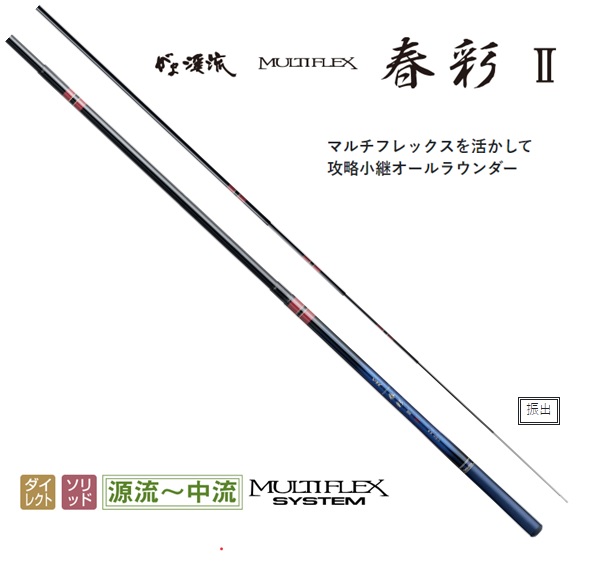 マルチフレックスを活かして攻略小継オールラウンダー。調子毎に竿の継番を個々に分析しより軽快に渓魚にアプローチできるようにテーパーやマテリアルを最適化し、張りと粘りを両立させました。そのことで、操作性と感度に優れ、仕掛の投入の際や魚が掛かればしっかりと負荷に応じて竿が曲がり込みます。中流域から上流部でオールマイティに活躍できるモデルです。マルチフレックスシステムを採用しているので、ポイントにあわせて3段階に長さが変えられます。穂先のリリアンを金属トップに進化させていますので、渓魚の繊細なあたりも逃しません。-超硬-源流釣行を考えた設計。短い仕舞のため、携行性に優れ、不意の大物でも難なく取り込みすることが可能な調子です。