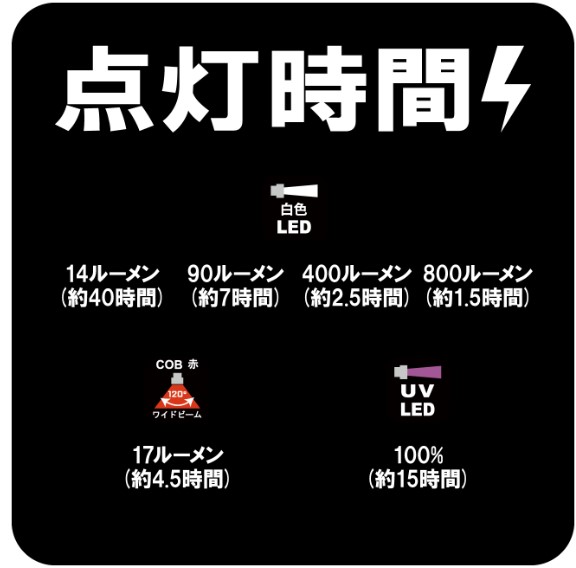 使っていた物が壊れたので購入しました。以前の物より明るくて使いやすいです。UVライトも付いているのでナイトゲームで欠かせない一品です。