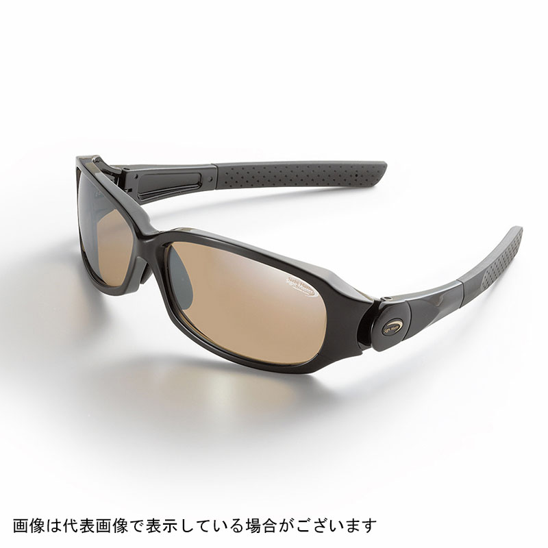 通常8カーブのサングラスは顔面に沿って回り込むようにデザインされ、人それぞれに異なる顔面カーブに対してはよりシビアで、どうしてもフィット感に差が出てしまうものでした。キネティックはβチタン製の新開発の薄型バネ蝶番を搭載し、タイトフィットを実現しながら幅広いサイズに対応します。このモデルはフロントの前傾角にもこだわり、常に斜め下を見ることの多い釣り人に合わせた角度に設定しています。またディンプル加工されたテンプルのラバー内部にはチタン製の心棒が挿入されており、ユーザー自身の手で自由に曲げてよりフィット感を高めることが可能です。新開発のソフトラバーに覆われたノーズパッドはより大きな接地面で支えることにより、大型レンズの荷重を適度に分散し、チタン製の芯により自由に調整が可能です。ワイドなレンズがサイドまで大きく回り込み、より広角な視野を確保しています。このグロスブラックは艶のあるブラックカラーになります。