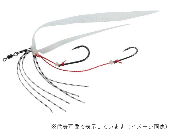 アピール力抜群!スカートとネクタイがついた紅牙遊動テンヤ+SS用替え針 ●通常の遊動テンヤと同様、エサのエビを刺して使います。エサがとられても、タイラバのように巻くだけで最後までマダイにアピール。チャンスが倍増します。リアクションで喰わせたい時、巻きでしか反応しない状況にもオススメです。※掲載している商品の画像は代表画像を表示しています。また実物と色が違って見える場合があります。あらかじめご了承下さい。