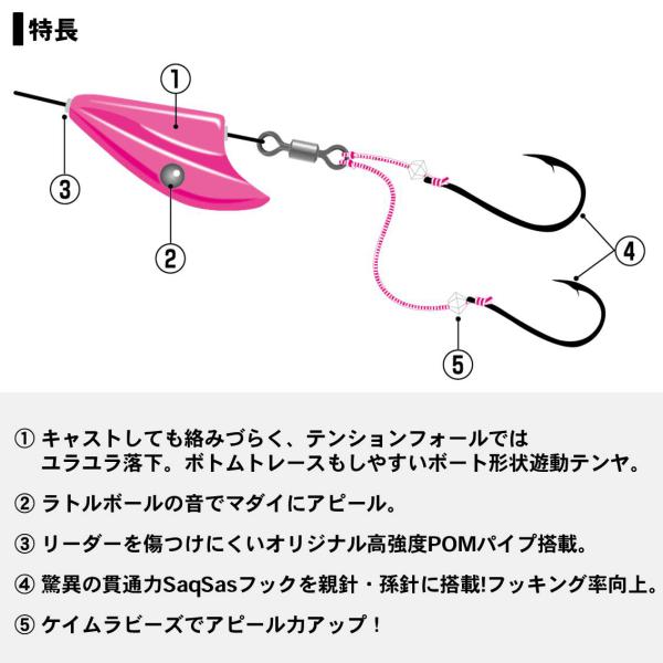 乗せで掛けやすい遊動テンヤは全国的な人気に! キャストしやすい(絡みにくい)・音で誘う新しい遊動テンヤをダイワから新提案!!■遊動式のメリット ●エサを自然にアピールフォール中や、ボトムでステイさせる際、針とヘッドに一定の距離が生まれエサが自然に漂います。 ●バレにくい。掛けてからはタイの豪快な首振りにも力を逃してバラシにくい。※掲載している商品の画像は代表画像を表示しています。また実物と色が違って見える場合があります。あらかじめご了承下さい。