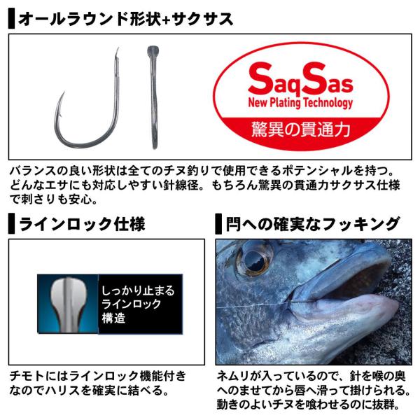 銀狼チヌSSマルチの細軸軽量モデル。 ■全てのチヌ釣りに対応出来るオールラウンド形状 ■オキアミ・活エサ・練エサ等どんなエサにも対応するオールラウンドな線径 ■ハリスがしっかり止まるラインロック仕様 ■驚異の貫通力 サクサス仕様※掲載している商品の画像は代表画像を表示しています。また実物と色が違って見える場合があります。あらかじめご了承下さい。