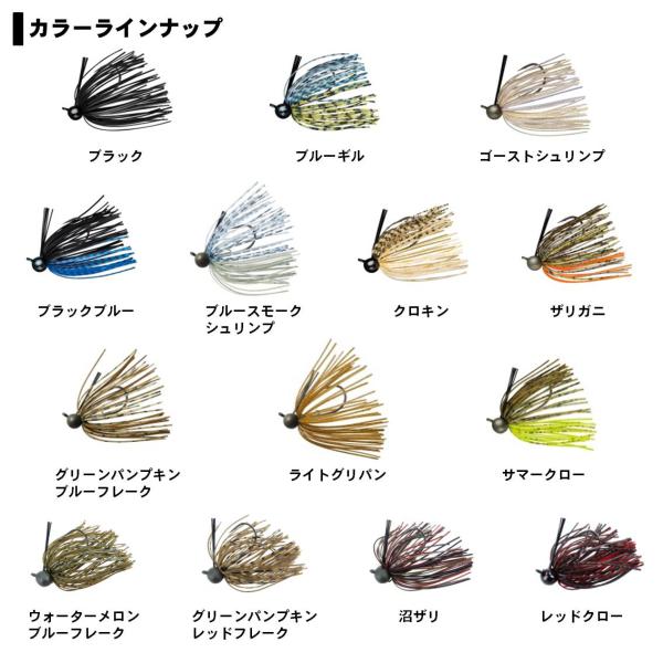 ボトムも中層もOK。マルチに使えるフットボールジグ。1つのジグでボトムのずる引きも中層のスイミングも対応できるマルチなジグ。フックのシャンクは、長すぎず短すぎない設定とし、3インチ程度のトレーラーを使用したボトムの釣りから4インチ程度のトレーラーを使用したスイミングの釣りまで幅広く対応。ヘッドの形状は通常のフットボールよりも低重心に設計したおにぎり型とすることでレンジキープ力を向上させた。アイの位置は、45度に設定。ボトムのストラクチャーにスタックしてから、しっかり抜けてくるようなアイポジションとした。ヘッドの素材は樹指タングステンを採用し、ボトム感度も良好。強めのガード設定にすることで、ボトムに沈んだオダやシャローのカバーをタイトに攻めることが可能。サクサスフックも搭載し、様々なエリア、コンディションに対応できるジグとなった。※掲載している商品の画像は代表画像を表示しています。また実物と色が違って見える場合があります。あらかじめご了承下さい。