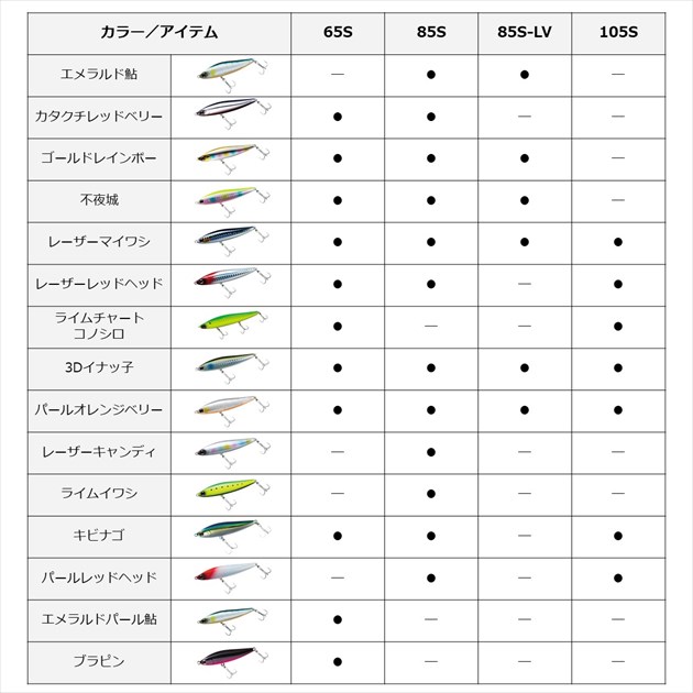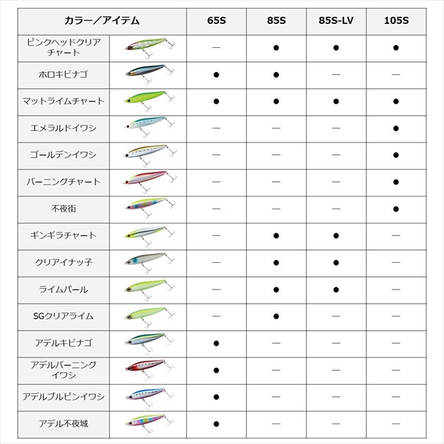 小沼正弥監修モデル。デイ&ナイト、いつでもどこでもピンチな時にもスイッチヒッター。河川やサーフ・磯・干潟などのシャローエリアや水面直下を簡単に攻略できるデイ&ナイト対応シンキング&スイミングペンシル。ジグ並みに飛距離が出るので、ミノーでは届かない遠くのボイルも射程範囲に収める。コノシロ・落ち鮎・イワシ・イナッコ・ハタハタ等様々なパターンに対応。アクションは流れに敏感かつ不規則なスラロームアクション。操作方法は、昼夜に関係なくスローリトリーブのタダ巻きのみ。プレッシャーが高い激戦区のフィールドで使用する時は、ダウンクロスではなくアップストリームキャストをオススメします。流されてくる小魚がシーバスの斜め前に現れるようなイメージでトレースさせるのがコツ。サーフ・磯・漁港・湾奥・都市型河川・河口・干潟・ボイル打ち・そしてピンチな時など、様々なフィールドでお試しいただきたい。