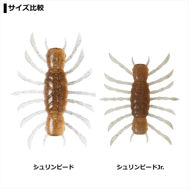 フォールと高速トゥイッチで誘うデカバスキラー。高い食わせ能力を誇るエビ系ワーム。上下左右対称ボディでフックセットしやすく、オフセットフックでもマスバリタイプでも使用可能。フォールでは全ての脚がピリピリとアクションし、水中を漂うエビを演出。左右にはカップを設け、ちょうちん釣りの際にアピール力をプラス。硬いマテリアルを採用し、高速トゥイッチでのエビが逃げ惑うアクション、フォールでの漂い感が実現。