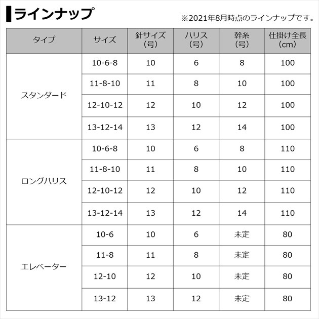 タイプ:エレベーター 針13号 ハリス12号 仕掛全長:80cm ※実物と色が違って見える場合があります。あらかじめご了承下さい。