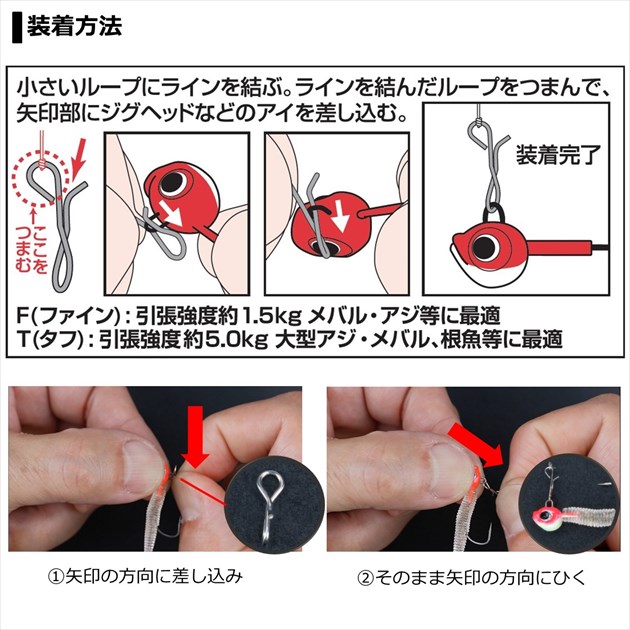 つまみやすく着脱が簡単!ジグヘッド交換も楽々のアジング・メバリングスナップ。アジ・メバルに最適な細軸のF(ファイン)