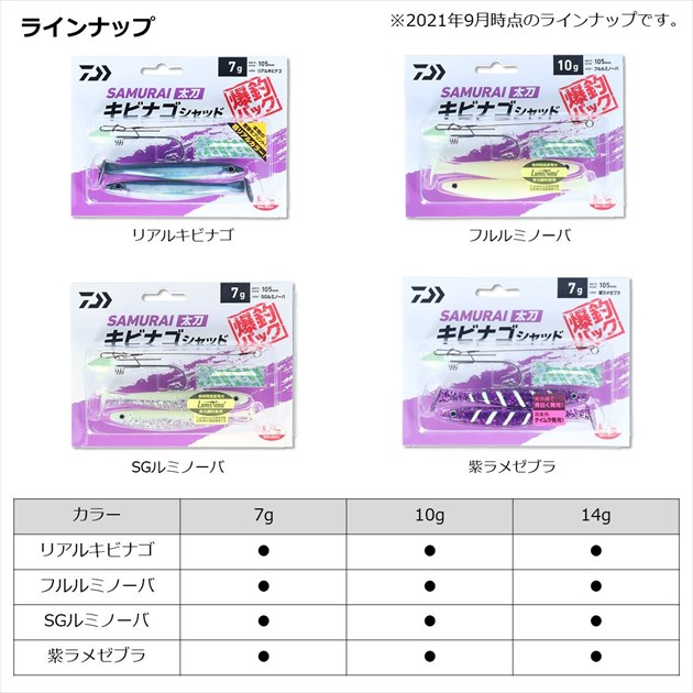 【ネコポス対象品】ダイワ ワーム サムライ太刀 キビナゴシャッド爆釣パック10g フルルミノーバ