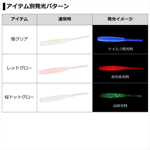 月下美人ビームスティックがコアにイワシ油を高濃度で配合し集魚力がパワーアップ!ライトゲームの定番ワーム「ビームスティック」が、形状や素材はそのままに、集魚コア仕様になってリニューアル。イワシ油をコアの部分に集中的に配合することで外側の透明感を残しつつ、ニオイと味の持続性がUP。