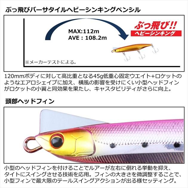 ヒラメ&マゴチからシーバス、青物まで幅広く狙える、超ぶっ飛びのバーサタイルヘビーシンキングペンシル!