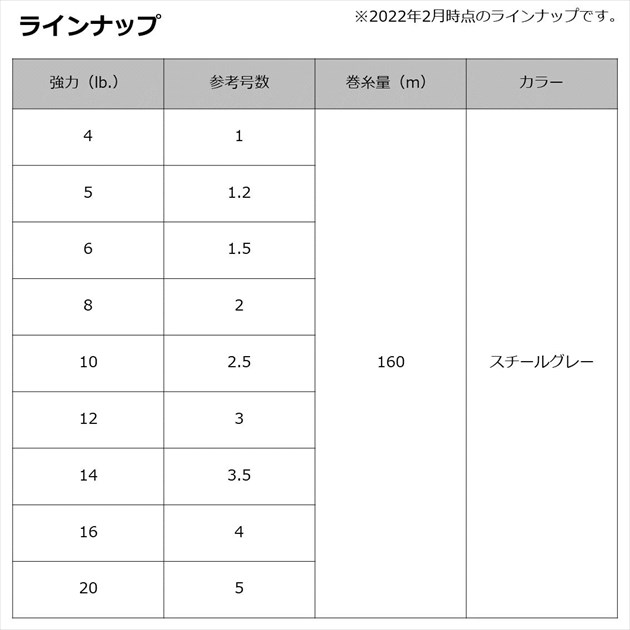 強力:10lb 参考号数:2.5 巻糸量:160m ※実物と色が違って見える場合があります。あらかじめご了承下さい。