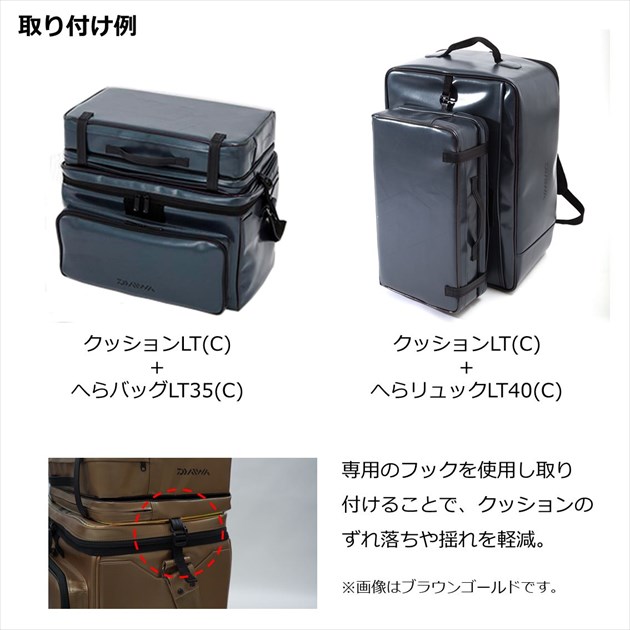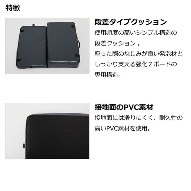なじみ易く、しっかり支える。軽量・シンプルな段差タイプクッション。座った際のなじみが良い発泡材としっかり支える強化ボードの専用構造。水に強くお手入れ簡単な表面素材。接地面には滑りにくく、耐久性の高い素材を使用。へらバッグLT35(C)の上部、内側に収納可能。へらバッグLT35(C)、へらリュックLT40(C)に取り付けできるフックループ付き。