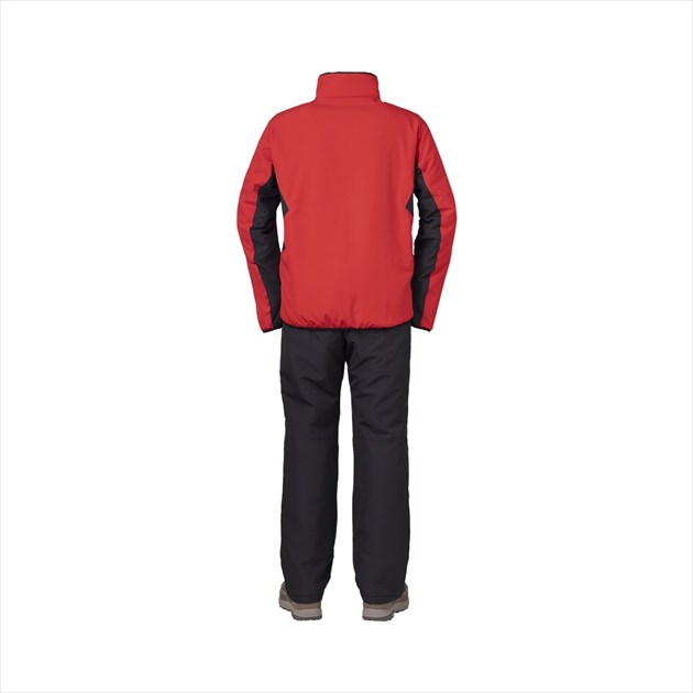 手頃で便利な中綿入りスーツ。ベーシックな中綿入りスーツ。表地は撥水加工で便利。裾スピンドル付きで足首回りを絞る事が可能。ミドラーとして着ても嵩張りにくい薄綿仕様。年代を問わず着用できるベーシックなシルエット。