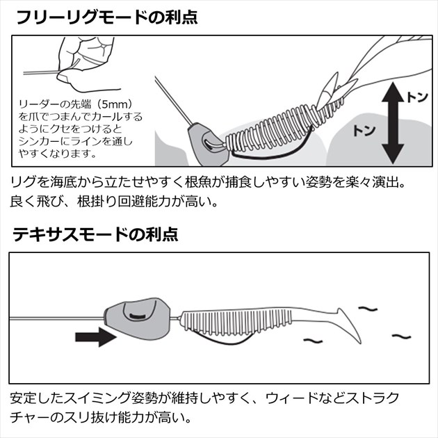 タングステン製二刀流バレットシンカー。1つで2役!2つのモードを搭載した新形状中通式バレットシンカー「2WAYシンカー」に高感度・高比重タングステンバージョンが仲間入り。更に飛び・根掛かり回避率UP!