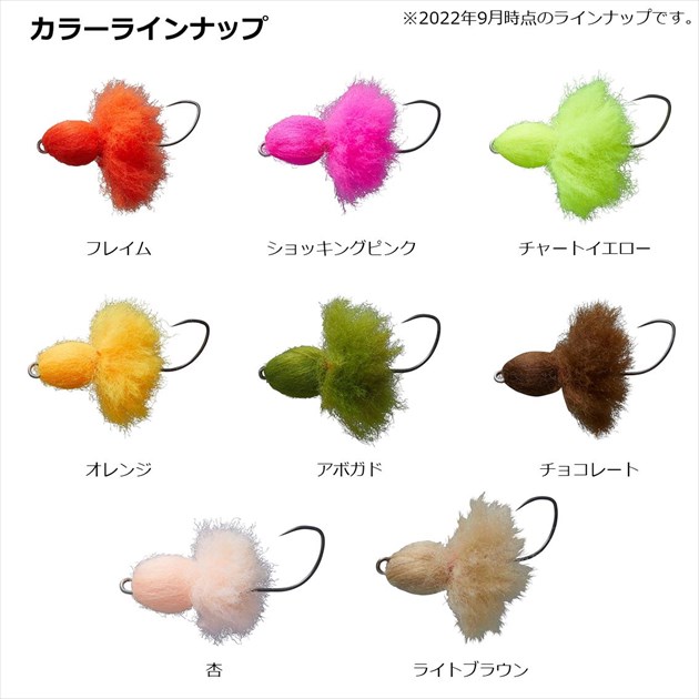 エリアトラウト専用。釣れない時の救世主「鱒ノ華」が更に釣れるようになってリニューアル ■楽々キャスト!水を含んでウェイトアップするので誰でも簡単にキャストできます。(1g→約1.5g)(1.5g→約2.0g)(2.0g→約2.5g)■ヘッド特徴・・軽比重特殊素材(スズ)をヘッドに採用!ペレットに近い沈降速度を実現。■フック可動式ジグヘッド! フックが可動式のため、フッキング後、魚の暴れをいなします。魚のバレを大幅減少させます。