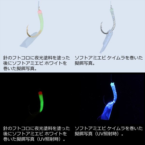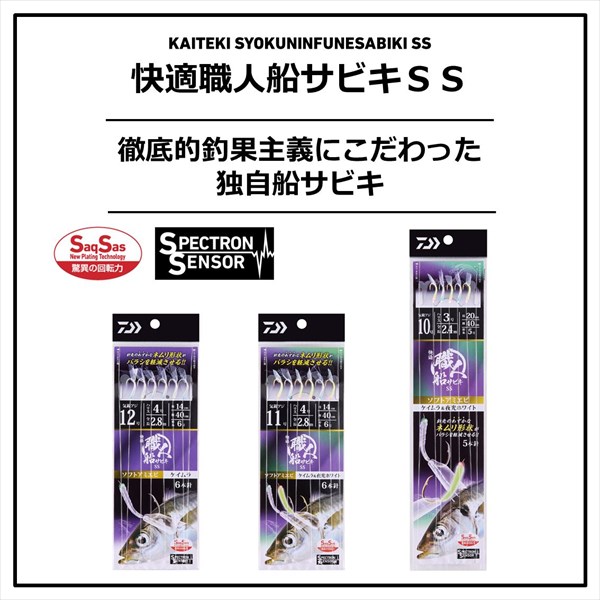 【ネコポス対象品】ダイワ 仕掛け 快適職人船サビキSS ソフトアミエビ6本針 ハリス14cm ケイムラ&夜光ホワイト 11-4