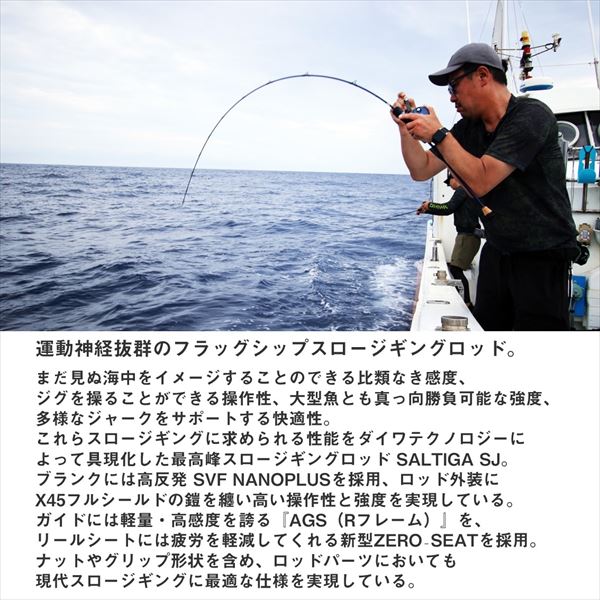 軽快な跳ね上げアクションが可能な次世代スロージギングロッド。■61B-6・・・さらなる大型魚やスーパーディープにも対応可能なパワーモデル。250〜800g前後のジグを使用したスロージギングに対応したスーパーパワーロッド。運動神経の良さをテーマに作り上げたジグを思い通り動かすことのできる反発力とパワーを備える一方、ロッド全体が仕事をすることでアングラーへの負担の少ない設計となっている。#6はビッグターゲットと真っ向勝負するために開発された大型青物・大型根魚対応のスーパーロッド。ソルティガ35クラスの大型リールとの相性もよく、メモリアルフィッシュとの出会いをサポートしてくれる。