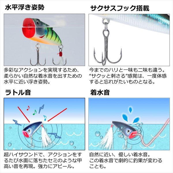 サイズ:50mm 自重:4.2g フック仕様:サクサス加工トレブル♯10 ※実物と色が違って見える場合があります。あらかじめご了承下さい。