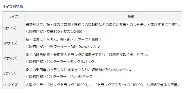 車のトランク内等の濡れ物、汚れ物の収納に便利。「バッグ、クーラー、鮎用品」等、さまざまな用品の収納に便利。不使用時にはコンパクトに収納できる折り畳み・組み立て仕様。濡れ物にも対応する防水生地、防水構造。濡れ物からしみ出した水にも安心。収まり良く、出し入れし易い高さ10cmサイズ。本体の立体を保持するピン付き。丸洗いでき、お手入れ簡単なEVA素材採用。