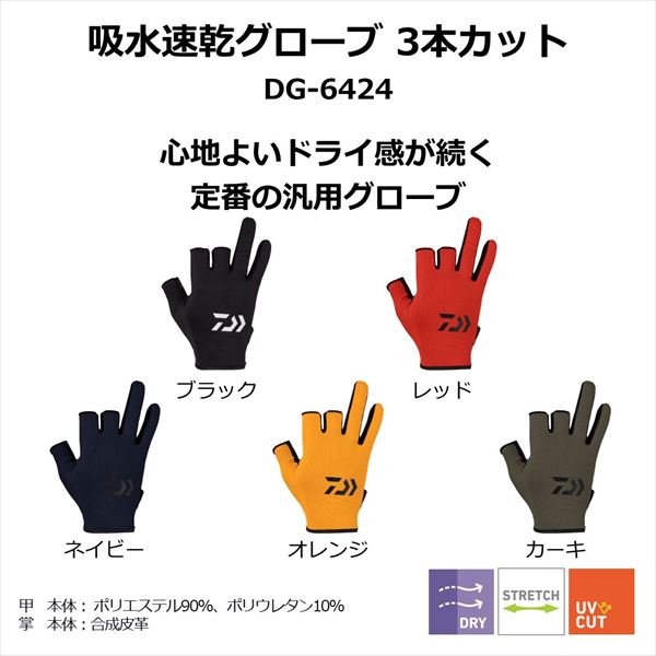 ダイワ 手袋 DG-6424 吸水速乾グローブ 3本カット