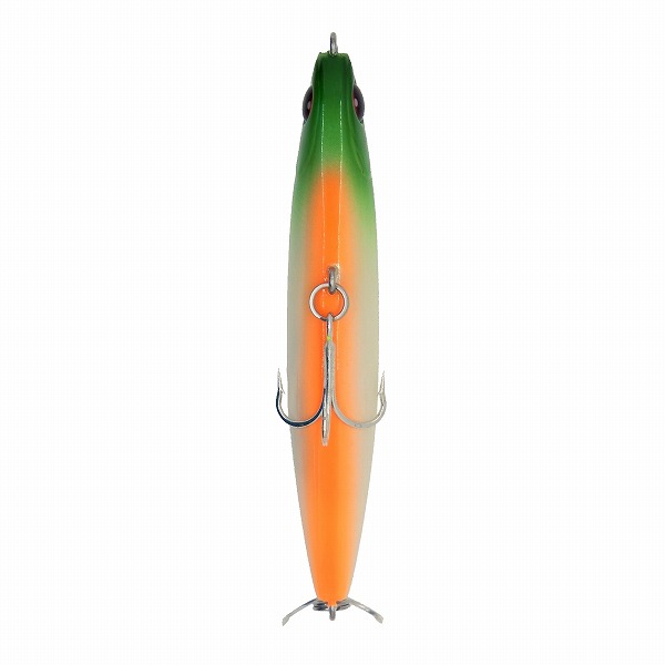 小沼正弥監修モデル。河川やサーフ、磯、干潟などのシャローエリアや水面直下を簡単に攻略できるデイ&ナイト対応シンキングペンシル。ジグ並に飛距離が出るので、ミノーでは届かない遠くのボイルも射程範囲。アクションは流れに敏感かつ、S字アクションのように波長が大きい不規則なスラロームアクション。微妙な流れの変化で「食わせの間」を自動的に演出。独自の高波動アクションとボリュームあるシルエットにより、広範囲に散るシーバスへアピールするため、サーチベイトとしても最適。操作方法は、スローリトリーブのタダ巻きのみ。プレッシャーが高いフィールドで使用する時は、アップストリームキャストがオススメ。流されてくる小魚がシーバスの斜め前に現れるようなイメージでのトレースがコツ。またシンキングペンシルなのに縦攻略も可能。水平姿勢でユラユラと揺れながらフォールする。「ここぞ!」という潮目やテトラ、ストラクチャーでのフォールもアリ。ぜひ「サーフ、磯、漁港、湾奥、都市型河川、河口、干潟、ボイル打ち、ピンチなとき」など「スイッチヒッター」をお試し頂きたい。