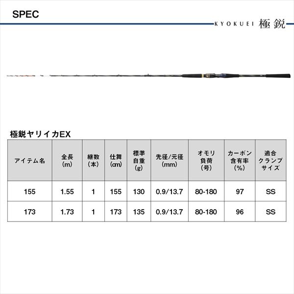 ダイワ 船イカ竿 極鋭ヤリイカ EX 155・J(1ピース)【即日発送】