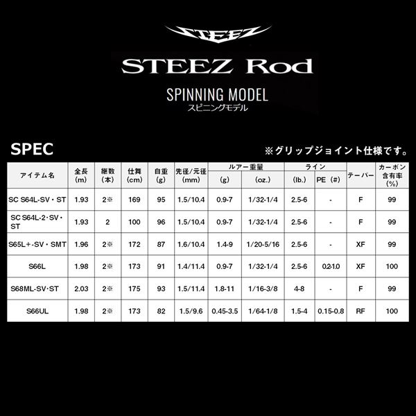 ダイワ バスロッド スティーズ SC S64L-2・SV・ST(スピニング センターカット2ピース)