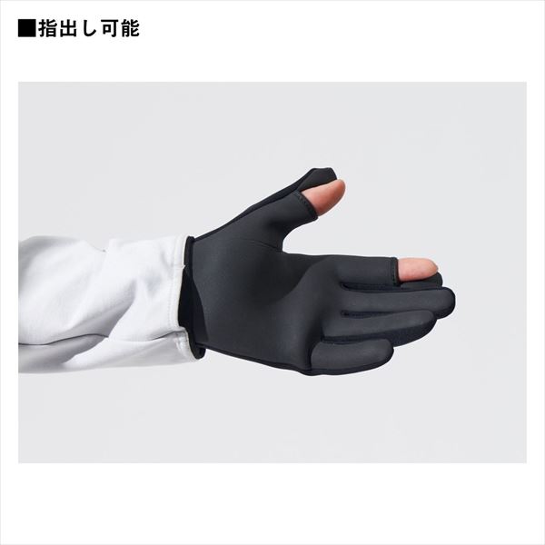 必要な時だけ指が出せる指カバー付きグローブ。保温性のあるクロロプレンゴムと、柔軟性と保温性を併せ持つタイタニュームαを使用。指先カバーを外すことができ、細かい作業時に便利。ベルト類を排除し、糸絡みのリスクを軽減。