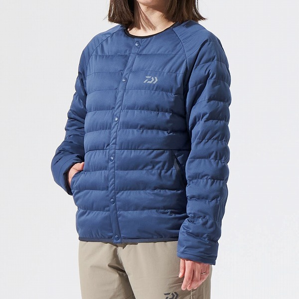 防風フィルムで身体の熱を逃がさない。肌に近い裏地部分の防風透湿フィルムにカーボン&アルミのダンロテック素材を使用。身体の熱を逃がしにくいため、暖かい空気が常に 身体を包み込む。ストレッチ性に優れた撥水素材を使用しているため身体にフィットし、動きを妨げない。インナーダウンとしても使用できるやや 短めの着丈・薄綿仕様。 【ダイワ キャスティング情報2024】