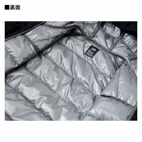 防風フィルムで身体の熱を逃がさない。肌に近い裏地部分の防風透湿フィルムにカーボン&アルミのダンロテック素材を使用。身体の熱を逃がしにくいため、暖かい空気が常に身体を包み込む。ストレッチ性に優れた撥水素材を使用しているため身体にフィットし、動きを妨げない。 【ダイワ キャスティング情報2024】