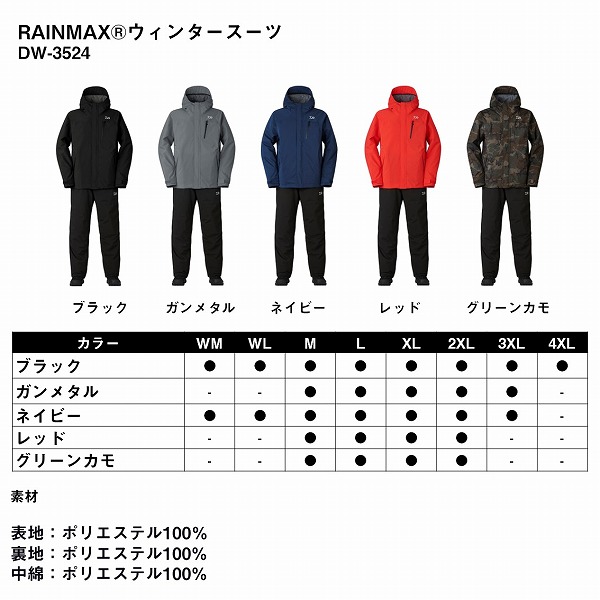【訳あり】ダイワ 防寒服アウター DW-3524 レインマックス(RAINMAX) ウィンタースーツ